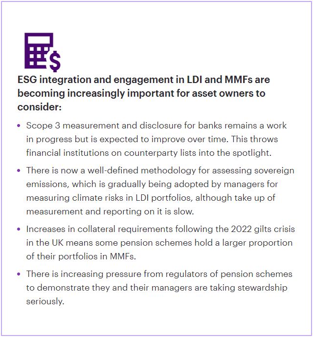 A framework to help asset owners when considering ESG risks and reviewing counterparty engagement in LDI and money market funds