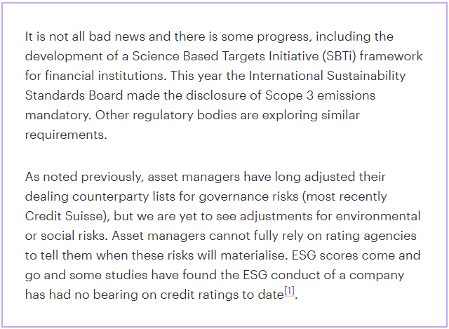 We believe certain ESG risks need to be carefully managed as they can translate into financial risks more quickly than expected. We have advocated managers give careful consideration to ESG and engagement for a long time.