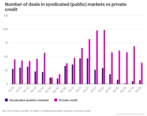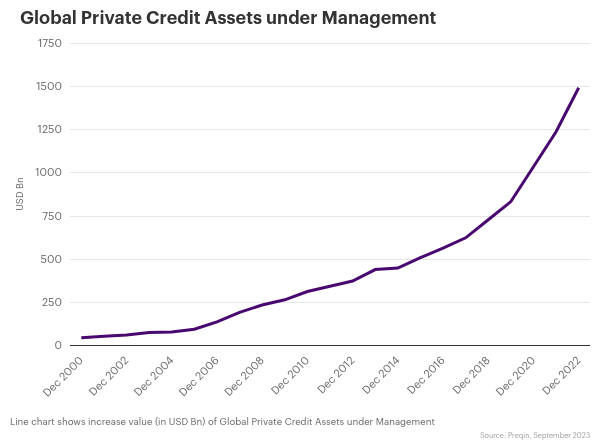 Regulation within the banking sector continues to intensify in 2023 after several bank failures which will likely constrain the lending capacity of banks further. In addition, public market volatility has further reduced bank risk appetite. As a result, private debt lenders have continued to win market share from banks as borrowers value the discretion, speed, and certainty that private lenders can offer.