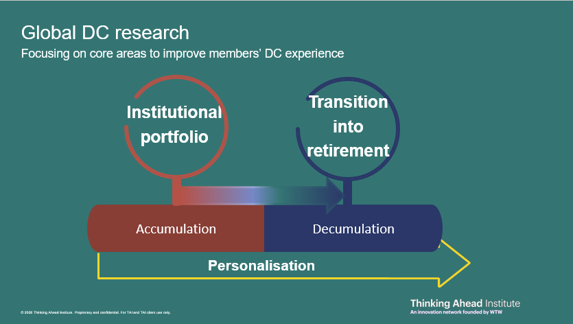 - Decumulation solutions that meets member needs with institutional strength: How can DC organisations bring institutional capabilities, such as investment design, risk pooling, governance and decision support, into retirement solutions in ways that members understand and trust?