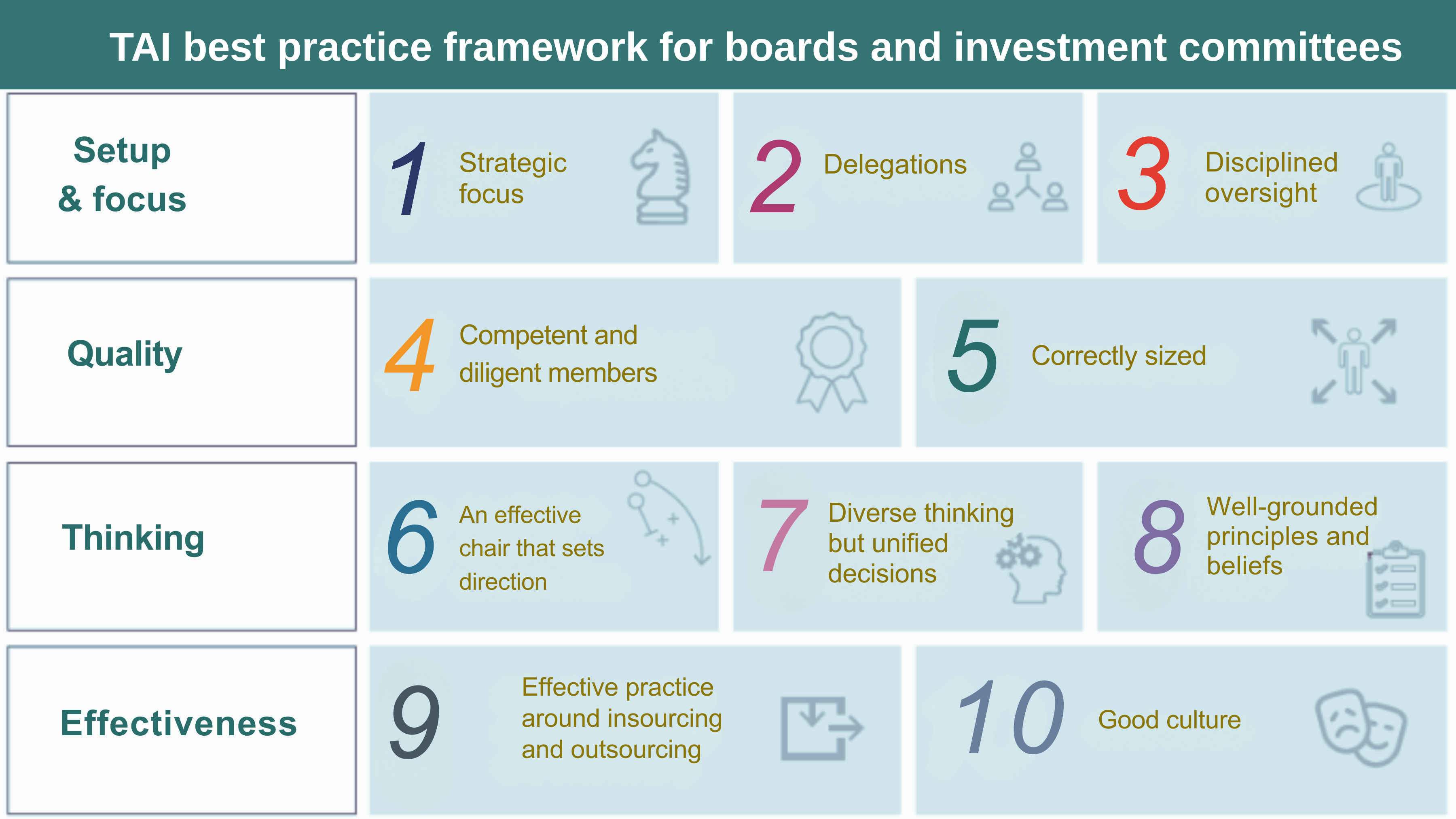 Effective governance connects beliefs to actions, aligns accountability with outcomes, and turns information into decision-useful intelligence. As investment environments become more complex and interconnected, governance must move beyond linear thinking and fragmented responsibilities to support joined-up, system-level decision-making. For many years, we’ve helped some of the world’s largest investors strengthen that foundation, clarifying decision rights, improving decision quality, and building leadership and culture that make governance work in practice.