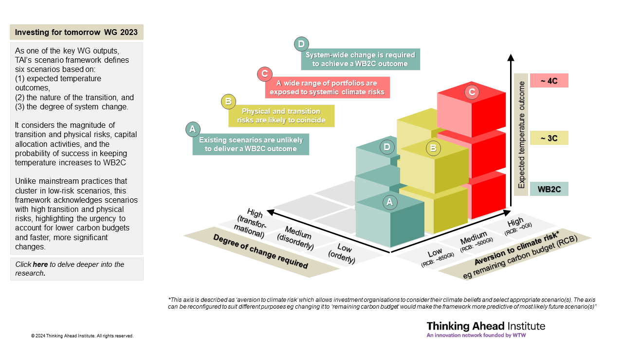 This paper – Red sky in the morning | a deep dive into climate scenarios and what to do – has been written following the research and discussion conducted by the Thinking Ahead Institute’s Investing for tomorrow – Macro working group.