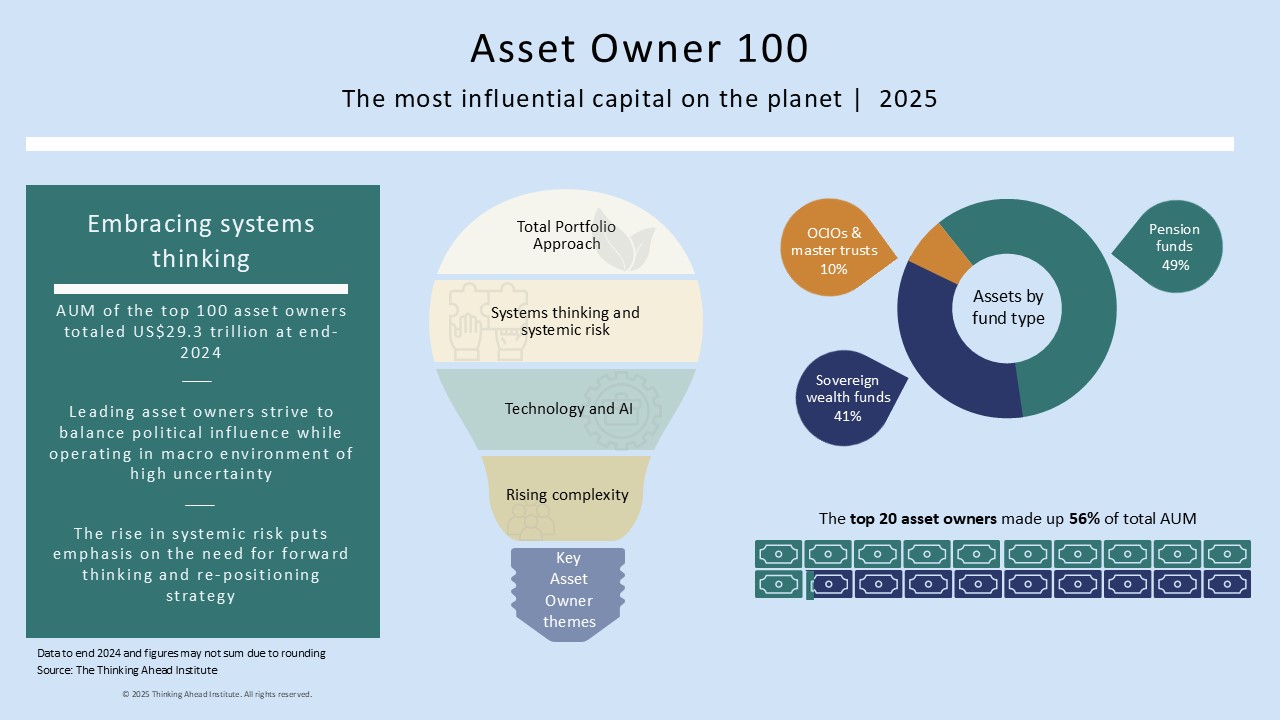 The study reveals the world’s 100 largest asset owners are now responsible for US$ 29.3 trillion as of the end of 2024; experiencing an increase in assets of 11.3% compared to the previous year.